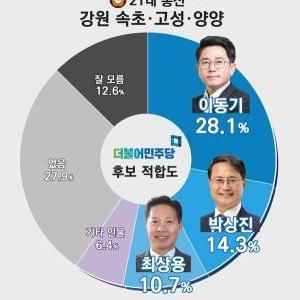 이동기 전이동기 더불어민주당 전 속초·고성·양양 지구당 위원장이 스트레이트-조원씨앤아이가 실시한 '4·15 총선' 민주당 해당 지역구의 예비후보 적합도 여론조사에서…
