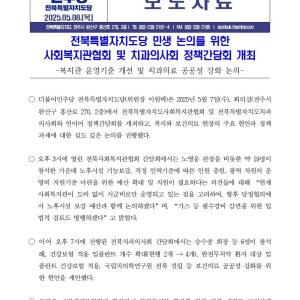 250519_보도자료_지역아동_사회복지_농어촌_정책협약_v1.0 (1).hwp전북특별자치도사회복지사협회정책간담회사진.jpg한국농어촌민박협회 전북도회.jpg전국돌봄서비스노동조합…