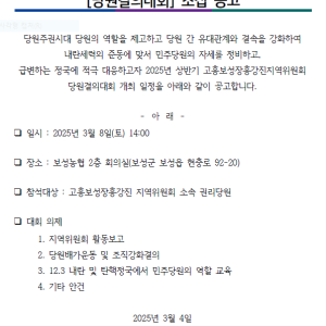 전남도당 - 민주당 고흥보성장흥강진지역위원회<당원결의대회>소집 공고