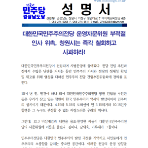 민주당 경남도당 - 김건희 구속은 사필귀정, 국기정상화로 가는 시작!