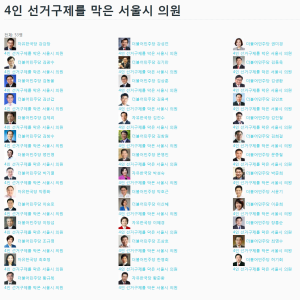 더불어민주당과 자유한국당 시의원들에 의해 서울시 기초의원 4인 선거구 획정이 무산 되었습니다.