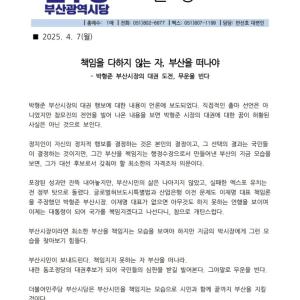 민주당 부산시당 - 박형준 시장은 대권 놀음 멈추고 민생 부산 현안 총체적 난국 해결하라