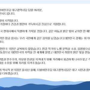 [ 허소 대구시당위원장 설 인사 영상 바로보기 ]https://youtu.be/P1SMLSanuLU?si=eN7fhGmKRljxRFughttps://youtu.be/P1SMLS…