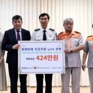 광명소방서(서장 이종충)와 광명소방서 의용소방대는 25일 오전 광명소방서 소회의실에서 광명시 사회복지협의회(광명희망나기본부)에 화재 피해 이웃을 위한 긴급지원 성금 424만원을…