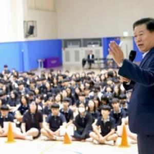 박승원 광명시장이 청소년들에게 직접 자치분권의 가치를 전하며 스스로 생각하고 실천하는 주체적 시민으로 성장할 수 있는 계기를 제공했다.박 시장은 지난 15일 오후 하안북중학교를…