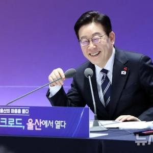 한눈에 보는 오늘 : 정치 - 뉴스 : [울산=뉴시스] 최동준 기자 = 이재명 대통령이 23일 울산전시컨벤션센터에서 열린 '울산의 마음을 듣다' 타운홀 미팅에서 발언하며 미소를…