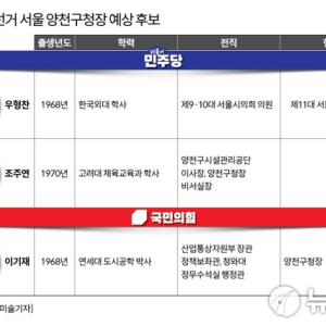 한눈에 보는 오늘 : 정치 - 뉴스 : [서울=뉴스핌] 백승은 기자 = 오는 6월 3일 전국지방선거를 앞두고 양천구를 이끌 구청장 후보에 이목이 집중된다.양천구는 영등포구와 함께…
