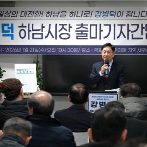 더불어민주당 강병덕 당대표 정책특보가 제9회 동시지방선거 하남시장 선거 출마를 공식 선언했다. 강병덕 후보는 21일 추미애 국회의원 지역사무실에서 기자회견을 열고
