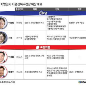 [서울=뉴스핌] 이경화 기자 = 6·3 지방선거를 앞두고 서울 강북구청장 선거 출마 예정자들의 발걸음이 빨라질 전망이다. 강북구는 더불어민주당 지지 성향이 매우 강하다. 역대…