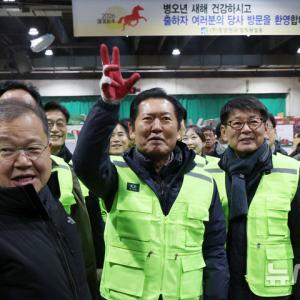 [서울=뉴시스]신재현 기자 = 정청래 더불어민주당 대표가 7일 새해 첫 현장 일정으로 서울 송파구 가락시장을 찾았다. 지방선거를 앞둔 정 대표가...