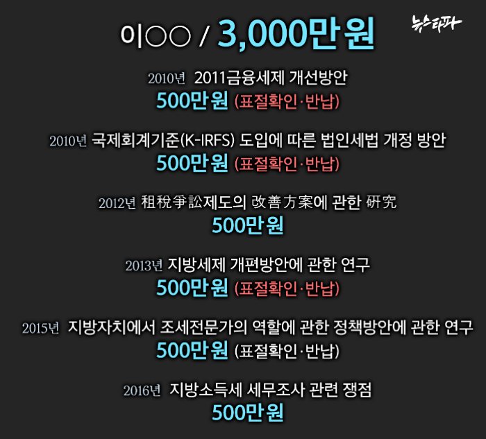 이 모 씨가 만든 또 다른 유령단체인 한국조세선진화포럼에는 모두 6건, 3,000만 원의 연구비를 줬다. 하지만 백재현 의원실은 여전히 이 씨를 모른다는 입장만 되풀이하고 있다. (백재현, 선거운동원이 만든 유령단체 세금 수천만 원 펑펑 : 2018년 10월 17일 보도)