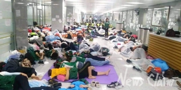 또한 건물이라고 할지라도 저녁에는 추울 수밖에 없는 가을 초입이다. 그런데도 모포 한 장, 담요 한 장도 제대로 반입하지 못하게 하는 것은 인도적 처우에도 어긋 난다. 전쟁 중에도 생존에 필요한 물품을 공급되는데, 아무런 무기도 없이 항의하러 들어간 여성노동자들의 기본적 인권을 침해해서야 되겠는가! 폭력적 상황도 아닌데 불법 채증을 하는 경찰과 사측 경비대원들의 행태는 시정돼야 한다.