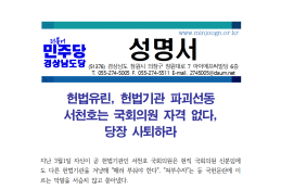 더민주 경남도당 - 성명서-헌법유린, 헙법기관 파괴선동 서천호는 사퇴하라!