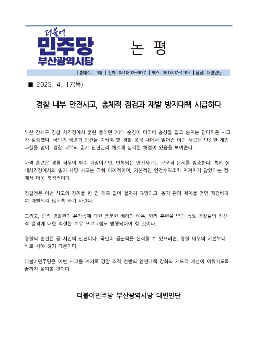 목, 2025/04/17- 00:00 에 admin 에 의해 제출됨 관련 개인/그룹 민주당 부산시당 정당 더불어민주당 지역 부산 카테고리 논평 디버깅파일 내려받기 전자점자 내려받기 점자뷰어 보기 --> 링크 https://busan.theminjoo.kr/party/sub/news/view.php?brd=65&post=3685&board_id=briefing Like 0 Dislike 0 댓글 달기 이름 제목 Comment 저장 Preview Leave this field blank