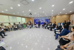 간담회에는 고남석 시당위원장을 비롯해 남두현·심현빈·윤재실 시당 문화예술특위 공동위원장, 손동혁 한국문화정책연구소 이사장, 그리고 연극, 음악, 시각예술, 문화기획 등 다양한 분야에서 활동 중인 지역 예술인 30여 명이 참석하였다.