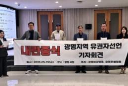광명비상행동·광명촛불행동이 합동으로 기자회견을 갖고 “내란정당 국민의힘 해체와 대선 출마 철회”를 촉구하고 나서 주목. 지난 9일 오전 11시 광명시청 로비에서는 김혜민 광명촛불행동 상임대표의 사회로 이 열렸다. 이들은 기자회견문을 통해 “내란수괴 윤석열이 파면되고 조기 대선이 치러진다. 이번 조기 대선은 12.3 비상계엄 선포 이후 4개월 동안 촛불과 응원봉을 들고 내란수괴 윤석열 파면을 위해 싸워온 국민들이 만들어낸 선거다. 이번 대선에서 국민들의 목표는 민주정부 건설과 내란세력 청산이다