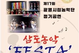 광명시립농악단이 오는 16일 오후 7시 광명시민회관 대공연장에서 제17회 정기공연 ‘삼도농악 FESTA’를 선보인다.올해로 창단 15주년을 맞은 광명시립농악단은 이번 공연에서 광명농악을 중심으로 전라도 이리농악, 경상도 구미무을농악 등 세 지역의 대표 농악을 한 무대에 올린다.공연은 관객들의 안녕과 평안을 기원하는 비나리로 문을 열며, 각 지역 농악단의 대표 공연과 함께 전라도 꽹과리, 경상도 북놀이, 광명농악 장구놀이, 버나놀이, 열두발놀이 등 다채로운 전통연희가 이어질 예정이다.문일상 시립농악단 감독은 “이번 공연은 악(樂),