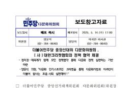 수, 2025/05/14- 00:00 에 admin 에 의해 제출됨 관련 개인/그룹 민주당 중앙당 정당 더불어민주당 지역 미특정 카테고리 보도자료 250514_보도자료_더불어민주당_중앙선대위_다문화위원회_크리켓협회_정책협약식.pdf250514_다문화위_보도자료_대한크리켓협회_정책_협약_체결.pdf공유 공유하기 닫기페이스북트위터카카오톡URL 복사 링크 https://theminjoo.kr/main/sub/news/view.php?sno=0&brd=188&post=1211339&search= Like 0 Dislike 0 댓글 달기 이름 제목 Comment 저장 Preview Leave this field blank