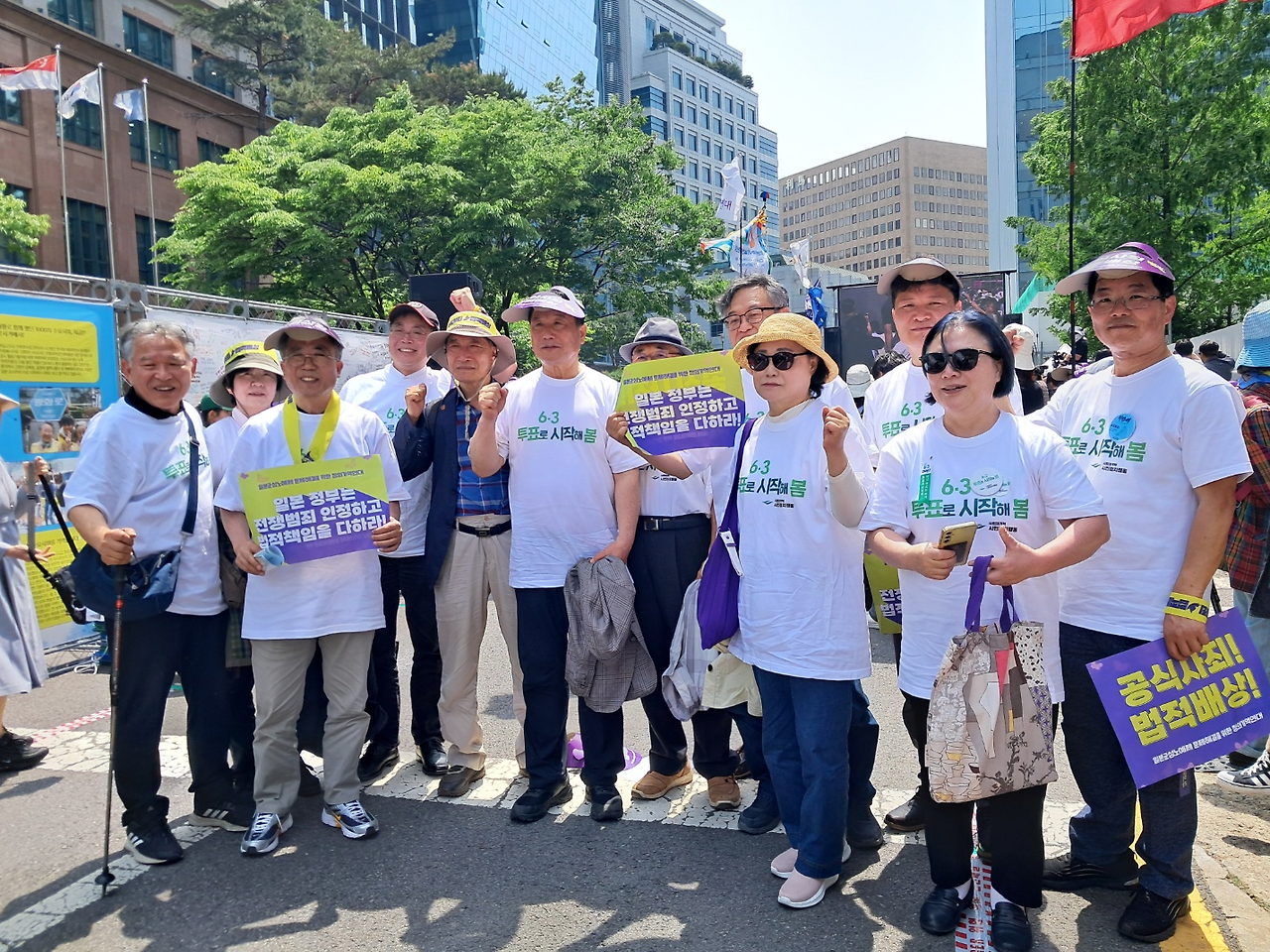 <p data-ke-size="size16">유권자운동본부 공동본부장님(김애영 김태일 최병모)들과 함께 유권자운동을 실천하고 있는 분들 중 15명이상이 5월 14일 1700차 '일본군 성노예제 문제해결을 위한 정기 수요집회'에 참석함. </p>