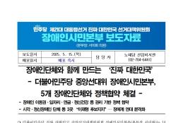 목, 2025/05/15- 00:00 에 admin 에 의해 제출됨 관련 개인/그룹 민주당 중앙당 정당 더불어민주당 지역 미특정 카테고리 보도자료 250515_장애인시민본부_보도자료_5개_장애인단체_정책협약.pdf공유 공유하기 닫기페이스북트위터카카오톡URL 복사 링크 https://theminjoo.kr/main/sub/news/view.php?sno=0&brd=188&post=1211359&search= Like 0 Dislike 0 댓글 달기 이름 제목 Comment 저장 Preview Leave this field blank