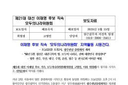 목, 2025/05/15- 00:00 에 admin 에 의해 제출됨 관련 개인/그룹 민주당 중앙당 정당 더불어민주당 지역 미특정 카테고리 보도자료 250515_모두의나라위_보도자료_광주출범식.pdf공유 공유하기 닫기페이스북트위터카카오톡URL 복사 링크 https://theminjoo.kr/main/sub/news/view.php?sno=0&brd=188&post=1211379&search= Like 0 Dislike 0 댓글 달기 이름 제목 Comment 저장 Preview Leave this field blank
