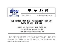 월, 2025/05/19- 00:00 에 admin 에 의해 제출됨 관련 개인/그룹 민주당 중앙당 정당 더불어민주당 지역 미특정 카테고리 보도자료 홍보본부_K-이니셔티브 TV광고.mp4제3의도약 뛴다_스틸컷모음.zip홍보본부_K-이니셔티브 TV광고_보도자료.pdf공유 공유하기 닫기페이스북트위터카카오톡URL 복사 링크 https://theminjoo.kr/main/sub/news/view.php?sno=0&brd=188&post=1211515&search= Like 0 Dislike 0 1 view 댓글 달기 이름 제목 Comment 저장 Preview Leave this field blank