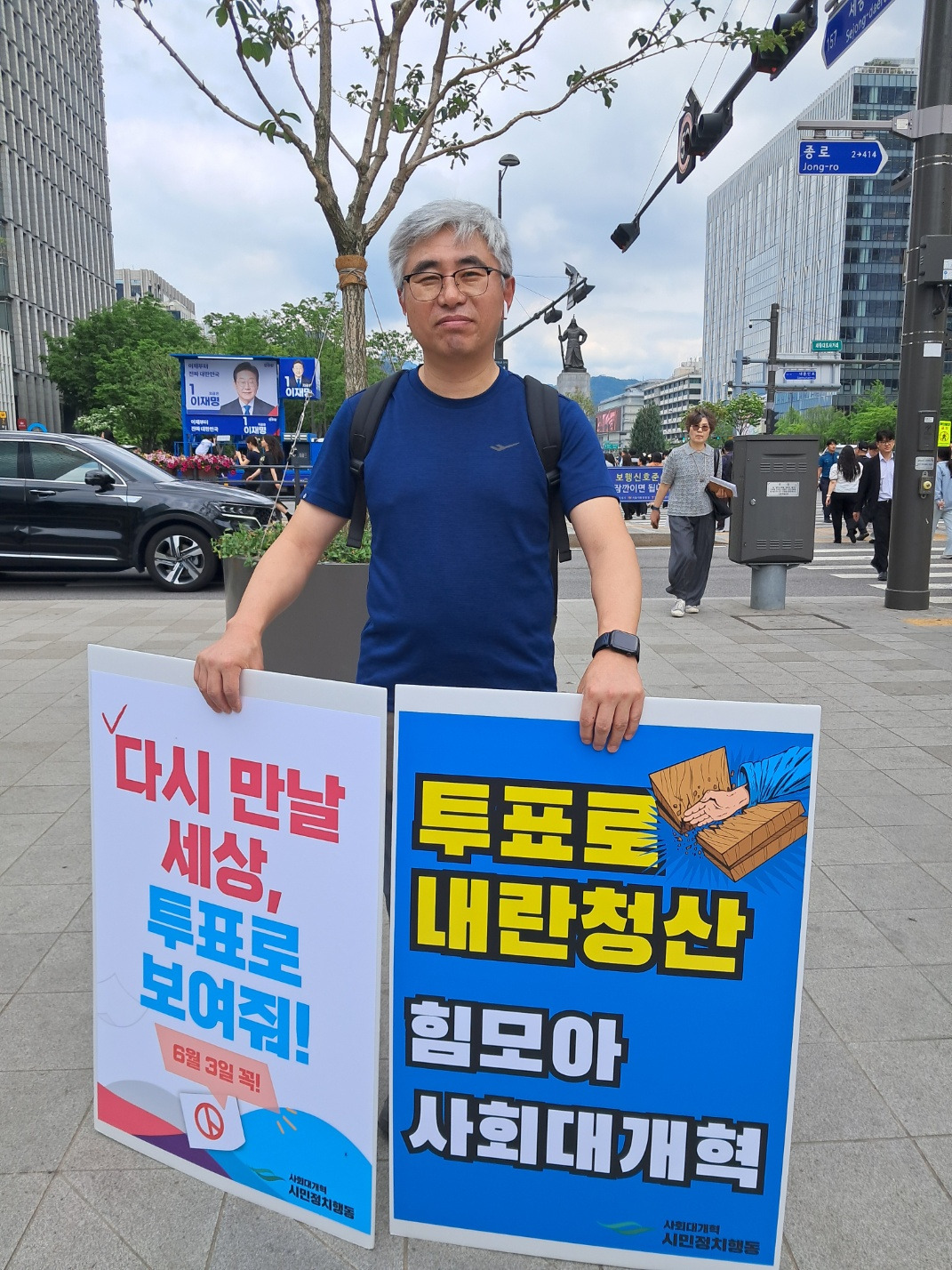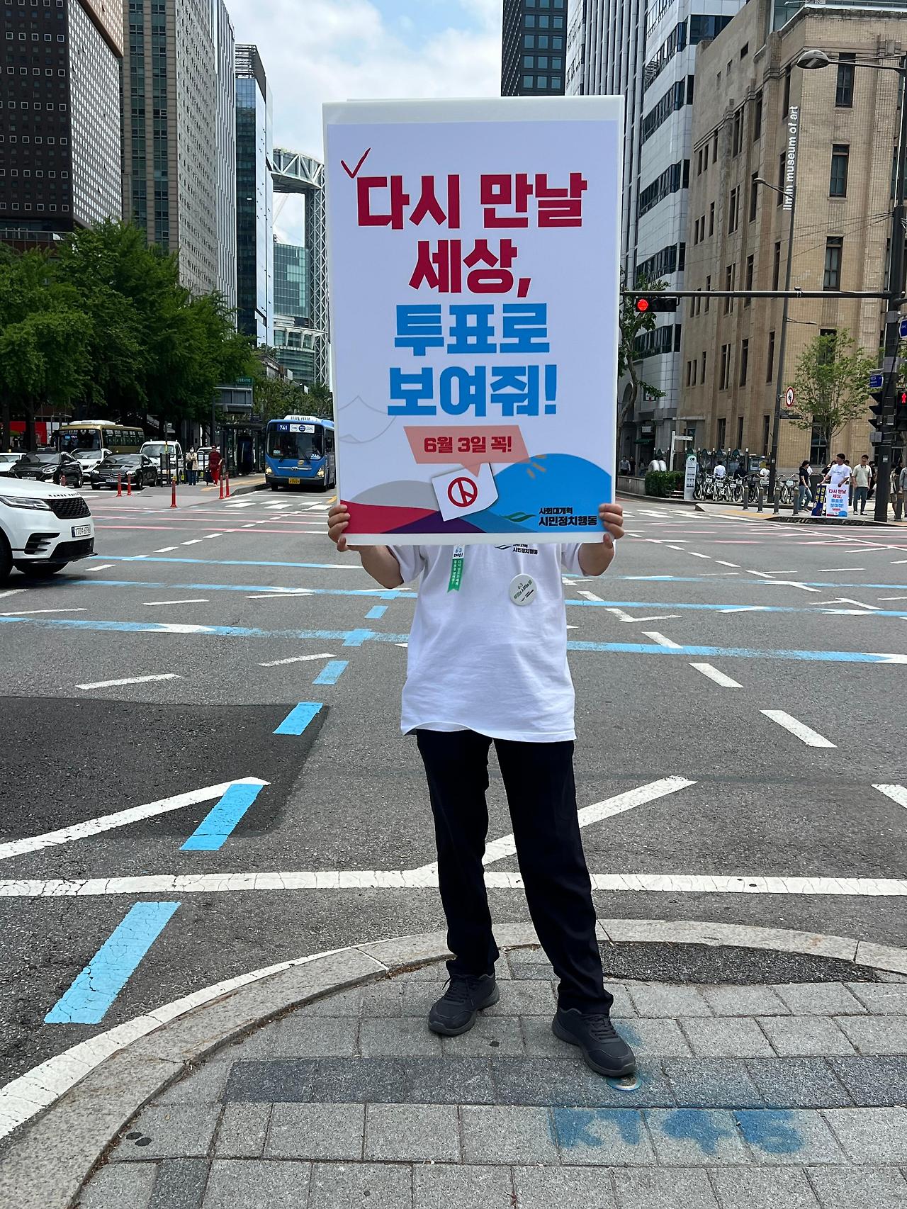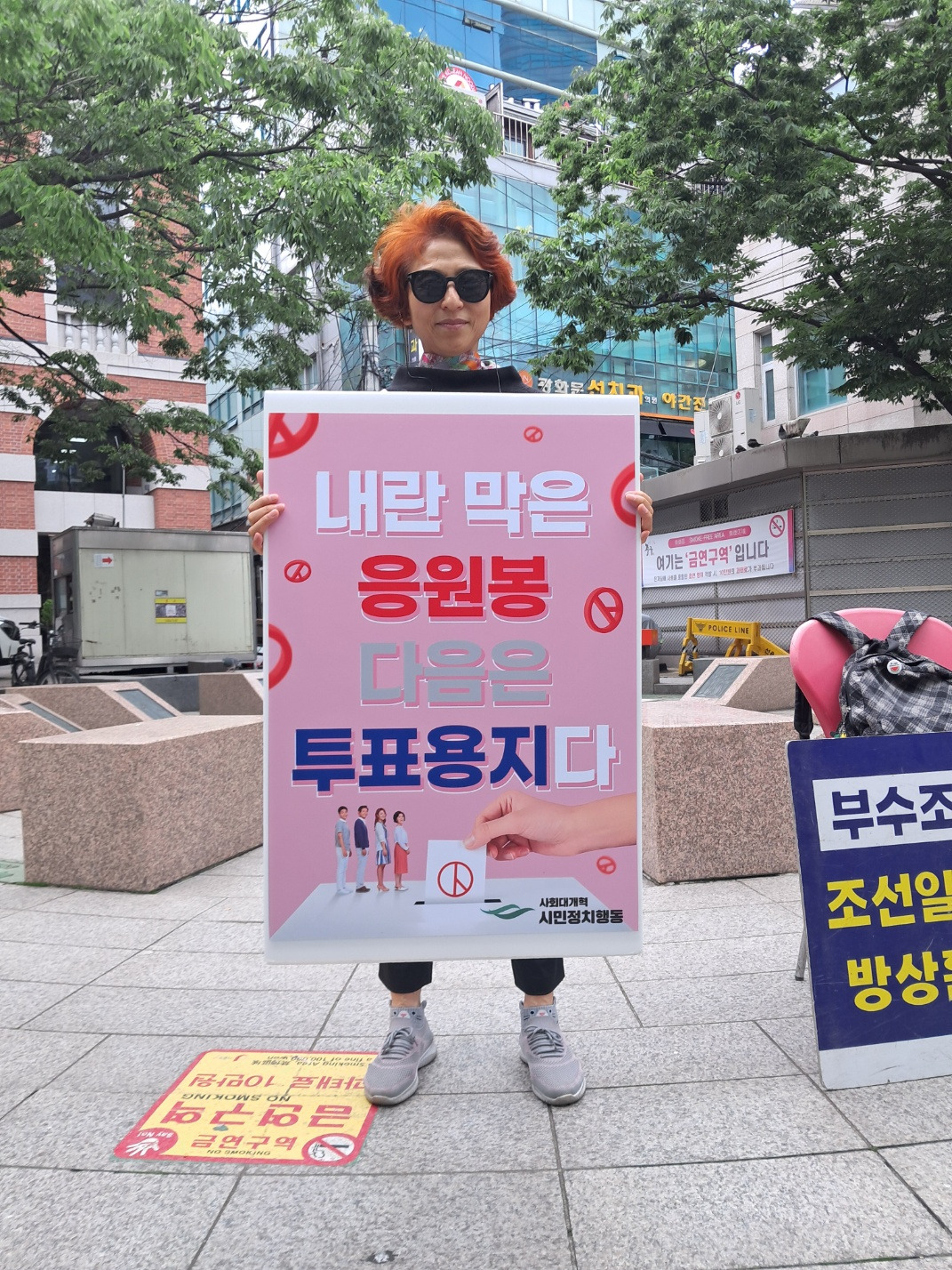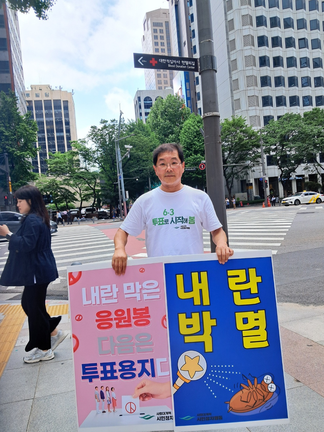 <p data-ke-size="size16">5월 21일 수요일 오전 11시 30분~12시 30분 광화문 일대에서 시민정치행동 유권자운동본부가 2차 유권자운동을 벌였다. 전국비상시국회의, 참교육동지회, 노후희망유니온, 조선일보폐간시민실천단, 전국목회자정의평화협의회 등 참석인원 17명이 함께 했다.그리고 5/23(금) 동시다발 투표참여 피케팅이 있을 예정이다. 대학가, 전철역 등에서 5인조 이상으로 투표참여 캠페인을 진행하시고 사진을 메일로 <span style="color: #333333; text-align: start;">보내주시기 바랍니다.</span> (메일:[email protected]) </p>