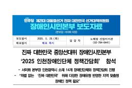 화, 2025/05/20- 00:00 에 admin 에 의해 제출됨 관련 개인/그룹 민주당 중앙당 정당 더불어민주당 지역 미특정 카테고리 보도자료 250520_장애인시민본부_보도자료_2025_인천장애인단체_정책간담회.pdf공유 공유하기 닫기페이스북트위터카카오톡URL 복사 링크 https://theminjoo.kr/main/sub/news/view.php?sno=0&brd=188&post=1211572&search= Like 0 Dislike 0 댓글 달기 이름 제목 Comment 저장 Preview Leave this field blank