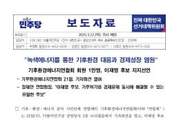 목, 2025/05/22- 00:00 에 admin 에 의해 제출됨 관련 개인/그룹 민주당 중앙당 정당 더불어민주당 지역 미특정 카테고리 보도자료 250522_후보총괄특보단_보도자료_기후환경에너지연합회_회원_지지_선언.pdf공유 공유하기 닫기페이스북트위터카카오톡URL 복사 링크 https://theminjoo.kr/main/sub/news/view.php?sno=0&brd=188&post=1211672&search= Like 1 Dislike 0 1 view 댓글 달기 이름 제목 Comment 저장 Preview Leave this field blank