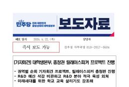 목, 2025/05/22- 00:00 에 admin 에 의해 제출됨 관련 개인/그룹 민주당 중앙당 정당 더불어민주당 지역 미특정 카테고리 보도자료 250522_대학생본부_보도자료_충청권_릴레이스피커_프로젝트.pdf공유 공유하기 닫기페이스북트위터카카오톡URL 복사 링크 https://theminjoo.kr/main/sub/news/view.php?sno=0&brd=188&post=1211701&search= Like 0 Dislike 0 2 views 댓글 달기 이름 제목 Comment 저장 Preview Leave this field blank