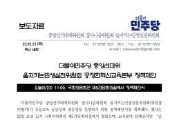 목, 2025/05/22- 00:00 에 admin 에 의해 제출됨 관련 개인/그룹 민주당 중앙당 정당 더불어민주당 지역 미특정 카테고리 보도자료 250522_을지키는민생실천위_보도자료_공정한혁신교육본부_정책제안.pdf공유 공유하기 닫기페이스북트위터카카오톡URL 복사 링크 https://theminjoo.kr/main/sub/news/view.php?sno=0&brd=188&post=1211709&search= Like 0 Dislike 0 1 view 댓글 달기 이름 제목 Comment 저장 Preview Leave this field blank