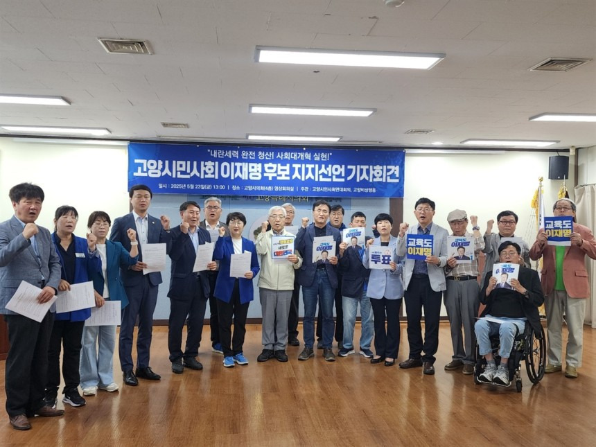 <p data-ke-size="size16"><span style="background-color: #ffffff; color: #303038; text-align: start;">고양특례시 지역 시민사회단체들이 23일 오후 1시 고양시의회 영상회의실에서 기자회견을 열고, "내란세력의 완전한 청산과 사회대개혁 실현"을 위해 더불어민주당 이재명 후보에 대한 공식 지지를 선언했다.</span><br /><span style="background-color: #ffffff; color: #303038; text-align: start;">이번 기자회견은 고양시민사회연대회의와 내란청산사회대개혁 고양비상행동의 공동 주관으로 열렸으며, 시민사회 대표자들이 대거 참석한 가운데 진행됐다.</span><br /><span style="background-color: #ffffff; color: #303038; text-align: start;">홍영표 고양시민회 대표 사회로 기자회견은 경과보고, 시민사회단체 대표 발언, 지지선언문 낭독, 구호 제창 순으로 진행되었다.</span></p>