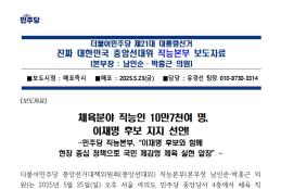 월, 2025/05/26- 00:00 에 admin 에 의해 제출됨 관련 개인/그룹 민주당 중앙당 정당 더불어민주당 지역 미특정 카테고리 보도자료 05_26_보도자료_직능본부_문화체육분야_지지선언_보도자료_V2.pdf공유 공유하기 닫기페이스북트위터카카오톡URL 복사 링크 https://theminjoo.kr/main/sub/news/view.php?sno=0&brd=188&post=1211862&search= Like 0 Dislike 0 댓글 달기 이름 제목 Comment 저장 Preview Leave this field blank