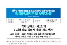 금, 2025/05/30- 00:00 에 admin 에 의해 제출됨 관련 개인/그룹 민주당 중앙당 정당 더불어민주당 지역 미특정 카테고리 보도자료 250530_장애인시민본부_보도자료_각계_장애인·시민단체_지지_선언_및_정책_협약.pdf공유 공유하기 닫기페이스북트위터카카오톡URL 복사 링크 https://theminjoo.kr/main/sub/news/view.php?sno=0&brd=188&post=1212172&search= Like 0 Dislike 0 1 view 댓글 달기 이름 제목 Comment 저장 Preview Leave this field blank