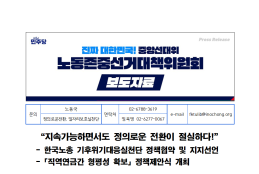 수, 2025/05/28- 00:00 에 admin 에 의해 제출됨 관련 개인/그룹 민주당 중앙당 정당 더불어민주당 지역 미특정 카테고리 보도자료 250528_노동존중선대위_보도자료_한국노총_기후위기대응실천단_정책협약_및_지지선언_등.pdf공유 공유하기 닫기페이스북트위터카카오톡URL 복사 링크 https://theminjoo.kr/main/sub/news/view.php?sno=0&brd=188&post=1212075&search= Like 0 Dislike 0 댓글 달기 이름 제목 Comment 저장 Preview Leave this field blank