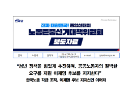 수, 2025/05/28- 00:00 에 admin 에 의해 제출됨 관련 개인/그룹 민주당 중앙당 정당 더불어민주당 지역 미특정 카테고리 보도자료 250528_노동존중선대위_보도자료_한국노총_청년조합원_지지_선언_공공노련_정책협약_및_지지_선언_등.pdf공유 공유하기 닫기페이스북트위터카카오톡URL 복사 링크 https://theminjoo.kr/main/sub/news/view.php?sno=0&brd=188&post=1212076&search= Like 0 Dislike 0 댓글 달기 이름 제목 Comment 저장 Preview Leave this field blank