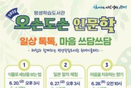 광명시(시장 박승원) 평생학습원은 오는 9일부터 원데이 인문학 프로그램 ‘2025 오손도손 인문학’ 참여자를 선착순 모집한다.‘오손도손 인문학’은 평생학습도서관과 연계해 오손도손 북카페를 학습문화 공간으로 운영하며, 시민의 평생학습 접근성을 높이기 위해 지난해 시작한 신규사업이다.이번 프로그램은 ‘2025년 상반기 광명지식상점’에서 인기를 끌었던 일부 강좌를 원데이 클래스 형식으로 재구성한 것으로, 시민들의 일상 속 수요를 반영해 ▲식물로 세상을 보는 법 ▲일본 말차 체험 ▲마음을 치유하는 향기 등 총 3개 강좌로 구성했다.대화와