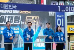 울산선대위 전은수 공동선대위원장 역시 “청년이 숨 쉬고 살 수 있는 나라, 그런 울산과 대한민국을 만들 수 있도록 기호 1번 이재명에게 꼭 한 표, 두 표, 세 표 모아 달라”며 “중구에서, 울산에서, 대한민국 전체에서 시너지가 날 수 있도록 다 함께 힘을 모아달라”고 강조했다.
