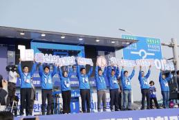 - 시민·당원·지지자 등 2만여 명 운집, 일산해수욕장 파란 물결로 물들여