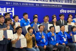 더불어민주당 이재명 대통령 후보 직속 총괄특보단은 5월 20일(화) 오후 3시, 청주시 청원구 율봉로 141 충북도당 회의실에서 ‘충북특보단 임명장 수여식’을 열고 지역본부장 및 부단장단에 대한 공식 임명 절차를 진행했다.