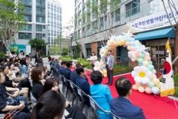 호반써밋그랜드에비뉴 아파트에 이 새로 문을 열었다.시는 지난 26일 호반써밋그랜드에비뉴 2단지 내 개원식을 개최했다.은 지난해 10월 시가 광명제10R구역 주택재개발정비사업조합과 어린이집 설치·운영을 위한 무상임대 협약을 체결하고, 위탁운영자를 선정한 후 리모델링을 거쳐 278.92㎡ 규모로 조성됐다. 지난 3월 4일부터 운영을 시작해 현재 0~3세 영유아 53명을 보육하고 있다. 박승원 광명시장은 축사를 통해 “아이 키우기 좋은 도시를 들기 위해 공보육 확충에 최선
