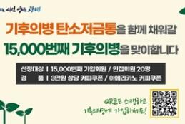 광명시가 1만 5천번째 ‘기후의병’에게 3만원 상당의 커피 상품권을 증정하는 이벤트를 실시한다고 지난 12일 밝혔다.또한 1만 5천번에 근접한 20명의 회원(1만 4천990번~1만 5천10번)에게는 5천원 상당의 '커피 상품권'을 제공한다. 단, 경품을 받으려면 가입 7일 내 ‘나는 기후의병 참여선언’ 항목을 실천하고 인증해야 한다.이번 이벤트는 광명시 탄소중립 시민실천 사업의 새 이름인 ‘기후의병 탄소저금통’ 브랜드를 널리 알리고, 시민들의 일상 속 탄소중립 실천을 독려하기 위해 마련됐다.시는 지난 4월 명칭 공모전을 거쳐 ‘기후