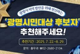 광명시는 오는 8월 29일까지 ‘제37회 광명시민대상’의 주인공을 찾기 위해 후보자를 추천받는다.은 지역사회 각 분야에서 근면·성실한 자세로 봉사하며 시 발전과 명예를 위해 헌신한 시민 또는 단체에게 수여하는 상이다.추천 대상은 다양한 분야에서 적극적인 봉사활동으로 지역사회 발전에 헌신해 온 개인 또는 단체로, 광명시민 누구나 본인을 제외하고 자유롭게 추천할 수 있다.후보자 자격은 추천 공고일인 7월 21일 기준으로 최근 3년 이상 광명시에 계속 거주하거나 관내에 사업장(직장)을 둔 시민 또는 단체면 가능하다.시는 오