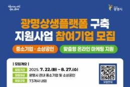 광명시(시장 박승원)는 오는 8월 27일까지 ‘광명상생플랫폼’에 입점해 온라인 마케팅을 확대하고자 하는 73개 중소기업·소상공인을 모집한다.‘광명상생플랫폼’은 관내 중소기업과 소상공인을 대상으로 맞춤형 온라인 마케팅, 콘텐츠 제작, 유통 채널 연계 등 종합적인 지원을 제공하는 광명형 통합 온라인 플랫폼이다. 단순 입점에 그치지 않고, 실질적인 매출 확대와 브랜드 인지도 향상을 도모하는 것이 핵심이다.최종 선정된 기업에는 ▲제품 상세페이지 제작 ▲자체 홈페이지 구축 및 리뉴얼 ▲제품 홍보 영상 제작 ▲키워드 광고, 쇼핑 검색 등 온라