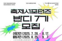 광명문화재단(대표이사 송은영)은 를 함께 만들어갈 축제 서포터즈 ‘반디 7기’ 7월 28일(월)부터 8월 17일(일)까지 모집한다. 모집인원은 만 19세 이상 시민 20명이며, 축제 전반에 직접 참여할 수 있는 기회가 주어진다.‘반디 7기’는 ▲공연 운영 지원 ▲MC 활동 ▲현장 안전관리 ▲안내소 운영 등 축제 전 과정에 참여하는 실무형 서포터즈로, 문화예술과 축제에 관심 있는 시민 누구나 지원할 수 있다.서류심사를 거쳐 최종 선발된 서포터즈는 오는 8월 25일(월) 발대식을 시작으로, 9월 5일(금)부터