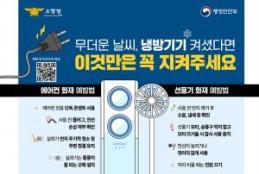 광명소방서(서장 이종충)는 본격적인 무더위와 함께 에어컨, 선풍기 등 냉방기기 사용이 늘어남에 따라 여름철 전기화재 예방을 위한 집중 홍보 활동을 펼치고 있다.여름철 전기화재는 냉방기기 사용 부주의, 먼지 축적, 노후된 전선 또는 장시간 사용에 따른 과열 등 일상 속 원인에서 쉽게 발생한다. 특히 에어컨과 선풍기는 한 번 작동하면 오랜 시간 가동되는 경우가 많아 화재에 더욱 취약한 만큼 올바른 사용법과 사전 점검을 통한 예방이 무엇보다 중요하다.여름철 전기화재 예방을 위한 안전 수칙으로는 ▲에어컨 전용 콘센트 사용 ▲작동 전 플러그