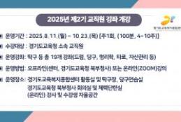 경기도교육복지종합센터(관장 피성주)가 교직원의 마음건강과 자기계발을 위해 ‘2025년 제2기 교직원 강좌’를 운영한다.8월 11월부터 10월23일까지 운영되는 이번 강좌는 오프라인 강좌 7개와 온라인 강좌 12개 등 총 19개 프로그램으로 진행된다.경기도교육복지종합센터와 경기도교육청북부청사에서 진행되는 오프라인 강좌는 탁구, 당구, 요가, 드럼, 통기타 등 신체활동 기반 프로그램으로 구성됐다.온라인으로 진행되는 강좌는 보태니컬아트, 캘리그라피, 아크릴화, 자수, 천연공예(라탄), 매듭, 타로, 명리학, 인문학, 디지털 드로잉 등으로