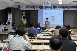 광명교육지원청은 8월 28일(목)과 29일(금) 이틀간 본관 3층 해오름실에서 「2025 하반기 내일을 설계하는 학교, 미래를 여는 관리자 리더십」 연수를 실시하였다고 밝혔다.이번 연수는 초·중·고 교장·교감 98명을 대상으로 미래교육 환경에 적합한 관리자 리더십을 강화하고 학생 맞춤형 교육을 실현하기 위해 마련되었다. 교육과정 연계 진로교육과 창업가정신 교육 확산, 하이러닝 AI 서·논술형 평가 현장 적용 확대를 목표로 진행되었다.첫 번째 프로그램에서는 ‘에듀테크와 창업가정신, 미래를 설계하는 관리자’를 주제로 에듀리프트 이진우