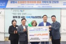광명 소상공인들이 지난 7월 발생한 소하동 아파트 화재로 피해를 입은 주민들을 위해 모은 성금 1천 800여만 원을 5일 광명시에 기탁했다.간담회 시작 전 열린 기탁식에서 광명시소상공인연합회(회장 박재철)와 광명시골목상권상인회총연합회(회장 오해석) 회원들은 자발적으로 모금한 성금을 광명희망나기운동본부에 전했다.박재철 회장은 “지역화폐 확대와 민생안정지원금 등 시의 다양한 민생 정책으로 소상공인들이 많은 힘을 얻었다”며 “이제는 우리가 지역사회에 보답할 때라고 생각해 마음을 모았다”고 말했다.오해석 회장은 “소상공인들이 모은 정성이