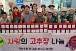 하안1동 새마을부녀회(회장 구미숙)와 새마을지도자협의회(회장 노태봉)는 지난 10일 하안1동 행정복지센터 마당에서 ‘사랑의 고추장 나눔행사’를 열었다고 밝혔다.이날 행사에는 하안1동 새마을부녀회원과 지도자협의회원 20여 명은 직접 고추장을 담가 독거노인과 저소득 가정 등 관내 취약계층 50여 가구에 전달했다.구미숙 회장은 “작년에 이어 올해도 회원들의 따뜻한 마음을 담아 정성스럽게 고추장을 준비했다”며 “무더운 여름을 이겨내느라 고생한 주민들이 맛있게 드시고 건강하게 여름을 마무리하길 바란다”고 전했다.노태봉 회장은 “이번 고추장